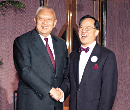 曾蔭權(quán)昨天下午五時在君悅酒店大禮堂旁的一個房間,與曾獲大紫荊勛章的十六名人士茶敘,他們在四時半開始陸續(xù)進場。據(jù)了解,大部分嘉賓在會上,向曾蔭權(quán)說了些勉勵性說話,而曾蔭權(quán)則向他們介紹自己的施政理念。