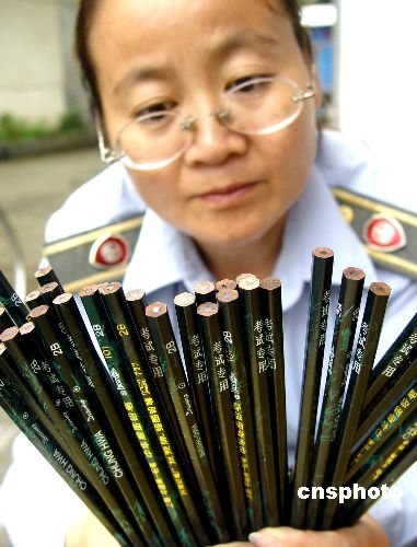 隨著2005年高考臨近,6月1日、2日兩天,山城江西省德興市工商管理部門(mén),出動(dòng)60余人次對(duì)全市48個(gè)文具用品店的2B鉛筆進(jìn)行巡回性大檢查,清繳所有假冒、劣質(zhì)的2B鉛筆。作者:卓忠偉