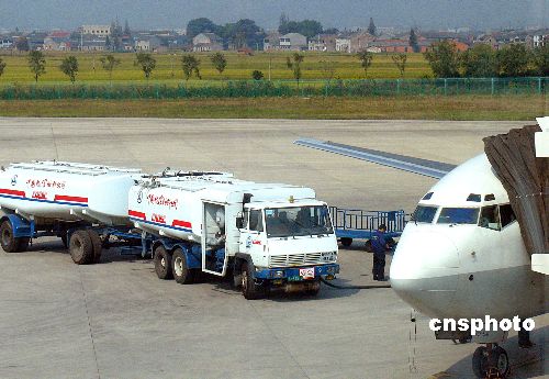 | 2005年6月3日,據(jù)民航總局披露,中國(guó)三大航空公司——國(guó)航、東航、南航提出的在機(jī)票中增加燃油附加費(fèi)的申請(qǐng)被有關(guān)部門正式駁回。上月中旬,國(guó)航、東航、南航三大航空巨頭共同向國(guó)家發(fā)改委申請(qǐng)了征收約占機(jī)票價(jià)格10%的燃油附加費(fèi)。民航總局有關(guān)負(fù)責(zé)人表示,盡管目前燃油價(jià)格居高不下,但由于2004年4月份《民航國(guó)內(nèi)航空運(yùn)輸價(jià)格改革方案》中已經(jīng)明文取消了燃油附加費(fèi),因此三大航空公司的申請(qǐng)不被接受。圖為寧波櫟社機(jī)場(chǎng)一輛加油車正在為飛機(jī)加油。作者:張和平