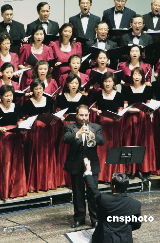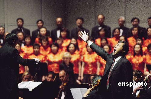 六月十二日,為紀(jì)念抗日戰(zhàn)爭(zhēng)勝利六十周年,美國(guó)硅谷愛樂合唱團(tuán),青青合唱團(tuán),圣荷西華人合唱團(tuán),圣荷西知青合唱團(tuán)在美西圣荷西藝術(shù)演出中心聯(lián)合演出《黃河大合唱》。作者:陳鋼