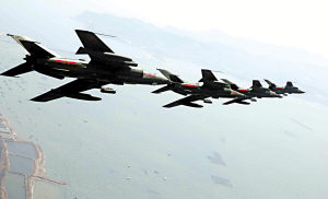 報(bào)道描述,多個(gè)機(jī)場的一批批新戰(zhàn)機(jī)緊急升空,向指定空域機(jī)動(dòng)出擊;多支機(jī)動(dòng)雷達(dá)部隊(duì)在預(yù)定地域快速集結(jié),導(dǎo)彈、高炮緊急機(jī)動(dòng)變更部署,迅速構(gòu)建藍(lán)天火網(wǎng);保障分隊(duì)采用空運(yùn)、空降、空投等多種方式,為參演部隊(duì)實(shí)施精確保障;負(fù)責(zé)海上搜救任務(wù)的海軍部隊(duì)及時(shí)奔赴空戰(zhàn)海域,擔(dān)負(fù)營救任務(wù)……整個(gè)訓(xùn)練過程,情況隨時(shí)導(dǎo)調(diào),對抗逼真,火藥味濃。