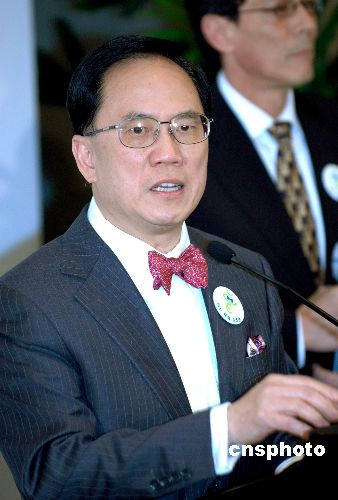 香港十六日自動當選的行政長官曾蔭權﹐在當日晚舉行記者會上答記者問。作者:宋吉河