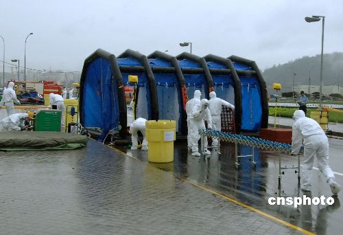 中新社澳門六月十六日電 題:目擊澳門“金雞--二00五”反恐演習(xí)