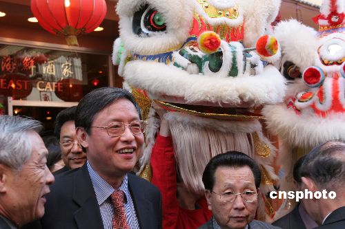 中國(guó)新任駐美大使周文重六月十八日拜訪舊金山華埠,當(dāng)?shù)厝A人舞龍舞獅歡迎。作者:劉丹