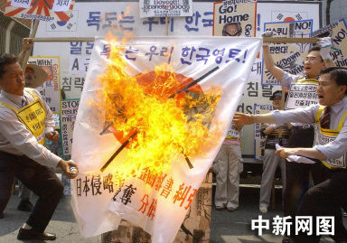 三個民族主義民間團體已在大使館和韓國總統(tǒng)府青瓦臺外同時播送了這首歌曲,從而開始了今天的抗議活動。一個民間團體在日韓兩國峰會會議所在地青瓦臺外張貼的一份聲明稱:“小泉首相沒有到訪韓國的資格,因為他從未就過去的罪行道歉,他只想加強日本的帝國主義!