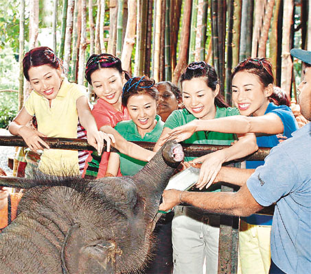 準(zhǔn)港姐于斯里蘭卡的拍攝工作進(jìn)行得如火如荼,昨日佳麗們被安排往探訪“大象孤兒院”。眾佳麗一見大象都表現(xiàn)得十分雀躍,更爭(zhēng)相向大象喂奶,不過鄧上文和大象合照時(shí),竟被大象撩腳,嚇得她馬上彈開。事后鄧上文坦言當(dāng)時(shí)很害怕,因怕大象會(huì)吸走她的鞋。但鄧上文仍然表示這次體驗(yàn)十分有趣。