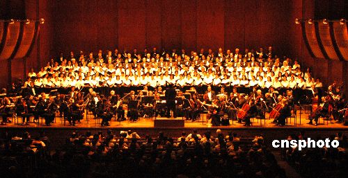 中美藝術(shù)家于當?shù)貢r間六月十九日在美國紐約林肯中心共同舉辦交響音樂會,紀念中國人民抗日戰(zhàn)爭暨世界反法西斯戰(zhàn)爭勝利六十周年。作者:龔文謨