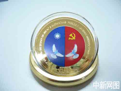 中新網(wǎng)6月22日電 香港金幣總公司在發(fā)行完“抗戰(zhàn)勝利60周年紀(jì)念幣”之后,日前又發(fā)行了一枚“歷史性的握手”紀(jì)念金銀幣。此幣正面是中國(guó)共產(chǎn)黨總書記胡錦濤與中國(guó)國(guó)民黨主席連戰(zhàn)在北京握手的彩色像,紀(jì)念幣的背面是國(guó)共兩黨的旗幟,旗下飛翔著和平鴿。