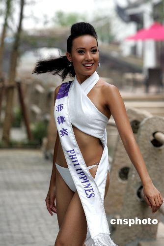 組圖:國(guó)際旅游小姐大賽佳麗在水鄉(xiāng)周莊拍攝泳裝照