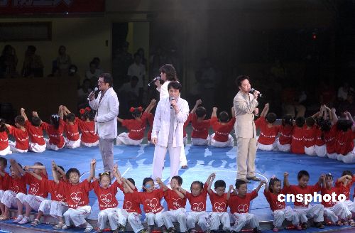 那英出場(chǎng)時(shí),大會(huì)播放她早前探訪聾啞學(xué)校的情況,她表示答應(yīng)過(guò)聾啞小孩一年后會(huì)學(xué)懂手語(yǔ)跟他們溝通,更即時(shí)教現(xiàn)場(chǎng)觀眾做“把愛(ài)心奉獻(xiàn)給孩子”的手語(yǔ)。而唐季禮表示成龍很喜歡周華健及李宗盛的《真心英雄》,說(shuō)罷四人便一起唱起這首歌,更有一百名小朋友陪唱。而房祖名則分享探訪山區(qū)兒童的感受,更即席捐出30萬(wàn)元救助孩子。