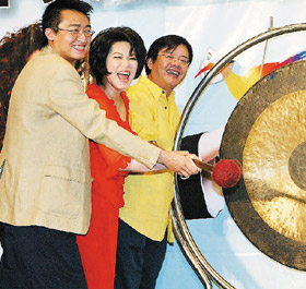 昨天蔡琴當(dāng)起了媒婆,帥哥律師謝震武擔(dān)任見證人,見證果陀劇團(tuán)與大陸上海星世代娛樂(lè)公司結(jié)緣。蔡琴與果陀藝術(shù)總監(jiān)梁志民,還有上海星世代娛樂(lè)董事長(zhǎng)徐毅簽約,將“跑路天使”引進(jìn)內(nèi)地,新名稱“跑路救天使”引起大陸一陣狂熱,北京、上海共5場(chǎng)演出,目前已經(jīng)開放售票,據(jù)了解,票房比蔡琴去年的個(gè)唱還暢銷,而4萬(wàn)人次的演出也將挑戰(zhàn)蔡琴的身體狀況。蔡琴表示,由于視力不佳,她無(wú)法與舞臺(tái)上的其它演員直接對(duì)戲,所以必須彩排更多次,一個(gè)人不斷重復(fù)練習(xí),將所有的走位及對(duì)話統(tǒng)統(tǒng)都背起來(lái),比起一般正常情況下演出,更加辛苦,蔡琴開玩笑說(shuō):“我的票價(jià)要調(diào)漲啦!”