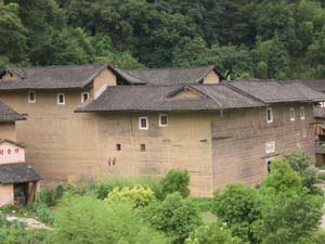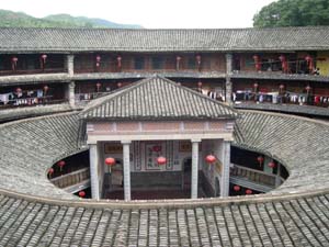 永定縣境內(nèi)的大型方型、圓型土樓有8000余座,最壯麗堂皇的、最有代表性的是洪坑村振成樓。這一“土樓王子”按八卦觀念結(jié)構(gòu)建造,卦與卦之間設(shè)防火墻,坐北朝南,調(diào)節(jié)陰陽(yáng)。每卦與內(nèi)層一樓采用北方四合院格式。全樓的設(shè)施布局既有蘇州園林的印跡,也有古希臘建筑的特點(diǎn)。堪稱中西合璧的建筑奇葩。1995年它的建筑模型與北京天壇作為中國(guó)南北圓形建筑代表參加了美國(guó)落杉磯世界建筑展覽會(huì),引起了轟動(dòng),一直被稱為“世界上獨(dú)一無二的神話般的山區(qū)土樓建筑”。