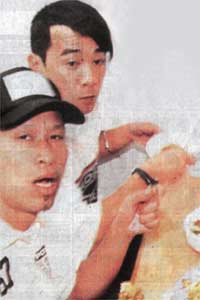 當時,記者上前拍照,婉婉立即低頭,小春見狀即喝罵:“不要拍呀!”繼而便拿起前面的粿條潑向記者,記者離開該店后,婉婉立即與小春耳語一番,似是勸他不要動怒,半小時后,眾人分別離開。