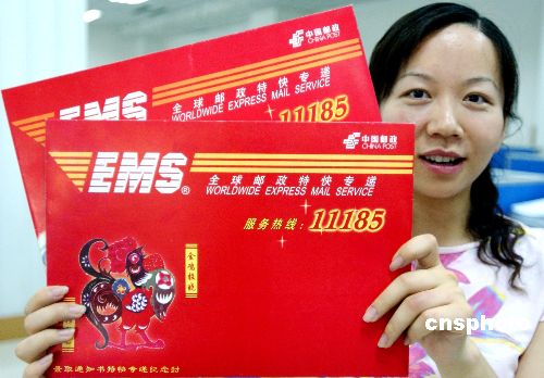 2005年6月28日,河南省啟用由中國(guó)郵政發(fā)行的2005年高考錄取通知書(shū)專(zhuān)用特快專(zhuān)遞信封。這種專(zhuān)遞信封采用喜慶的大紅顏色和傳統(tǒng)的“金雞報(bào)曉”的圖案為考生送去喜訊。作者:馬健