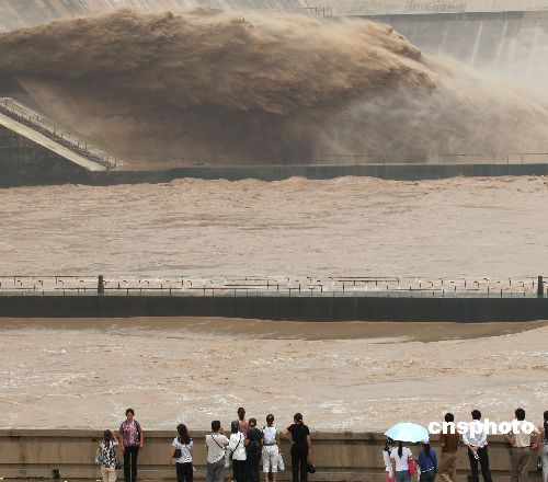 | 6月30日,小浪底水庫(kù)排沙洞黃濁水流奔騰而出,再現(xiàn)“黃龍咆哮”奇觀。小浪底水庫(kù)自6月16日首次進(jìn)行生產(chǎn)性調(diào)水調(diào)沙以來(lái),水庫(kù)水位已由16日調(diào)水調(diào)沙前的247.86米下降至27日8時(shí)的229.63米。按照這次調(diào)水調(diào)沙計(jì)劃,當(dāng)小浪底水庫(kù)水位降至230米以下時(shí),上游萬(wàn)家寨水庫(kù)與三門峽水庫(kù)水量將通過(guò)調(diào)度“接力”調(diào)水,在一段時(shí)間內(nèi)制造“人工洪峰”持續(xù)沖刷小浪底水庫(kù)庫(kù)尾淤沙,形成異重流,將小浪底水庫(kù)淤沙推至壩前,并通過(guò)小浪底水庫(kù)排沙洞排出。6月29日下午16時(shí),小浪底水庫(kù)出現(xiàn)人工異重流,黃濁水流從排沙洞咆哮下泄,它標(biāo)志著小浪底水庫(kù)人工異重流排沙再次運(yùn)用成功。據(jù)悉此次排沙過(guò)程將持續(xù)到7月1日晨6時(shí),小浪底水位也將降至225米。在2004年黃河調(diào)水調(diào)沙中,黃河水利工作者在世界上首次人工塑造異重流成功。作者:張曉理
