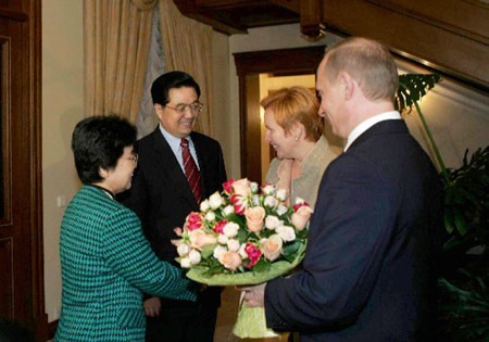 普京表示,非常高興時(shí)隔一個(gè)多月再次在莫斯科歡迎友好鄰邦中國(guó)的領(lǐng)導(dǎo)人胡主席。俄羅斯高度重視發(fā)展同中國(guó)的戰(zhàn)略協(xié)作伙伴關(guān)系,兩國(guó)在政治、經(jīng)濟(jì)等領(lǐng)域的合作取得了很大發(fā)展。今年兩國(guó)還將舉行首次軍事演習(xí)。胡主席此次重要訪問(wèn)必將有力地推動(dòng)俄中關(guān)系進(jìn)一步向前發(fā)展。