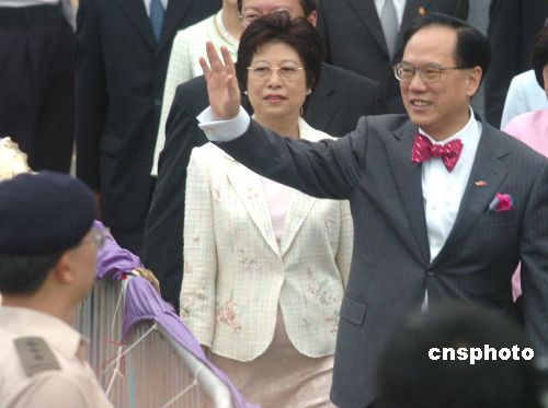 中新社香港七月一日電(記者文青)今天是香港回歸八周年,灣仔金紫荊廣場舉行升旗儀式,曾蔭權(quán)首次以行政長官身份,聯(lián)同剛獲委任為政務司司長的許仕仁,以及其他特區(qū)主要官員出席儀式,另有二千五百名嘉賓應邀出席,近一千名市民在場觀看,場面盛大和熱鬧。