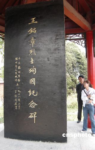 記者懷著崇敬的心情來到山東省滕州市烈士陵園,拜偈當年滕縣保衛(wèi)戰(zhàn)中為國捐軀的王銘章將軍等英烈。王銘章的紀念碑廳靜靜地坐落在西北面。紀念碑上的碑文記載:一九三七年日寇挑起“七·七”事變,王銘章師長預立遺囑,誓死殺敵報國,遂率八千巴蜀健兒出川北上抗日。