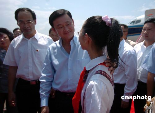 中新社梅州七月二日電(記者柯小軍)今天下午一點半,一架波音客機(jī)在廣東梅州梅縣機(jī)場剛剛停穩(wěn),一群記者便迫不及待地一擁上前,包圍了舷梯車,期待著拍下泰王國總理他信從飛機(jī)走出的鏡頭。