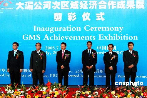 七月三日,大湄公河次區(qū)域經(jīng)濟(jì)合作(GMS)成果展在昆明國(guó)際會(huì)展中心開(kāi)始展出。該展覽分為多元文化、傳統(tǒng)友誼、豐碩成果和美好前景四個(gè)部分,展現(xiàn)了有關(guān)各國(guó)開(kāi)展合作以來(lái)取得的成績(jī)和美好前景。圖為柬、中、老、緬、泰、越官員在成果展剪彩儀式上。作者:納家驊
