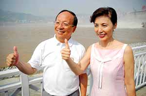 在離大壩不到二百米的近壩觀景點,蔣孝嚴(yán)夫婦頻頻合影留念。他說:“我和夫人也曾在埃及的阿斯旺大壩、巴西伊泰普大壩前合過影,但三峽大壩最雄偉!”他笑著對隨行記者說:“你們一定要把這張照片拍好!”
