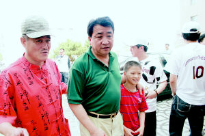 中新網(wǎng)7月4日電 據(jù)沈陽(yáng)晚報(bào)報(bào)道,前晚,趙本山掛帥遼足的首場(chǎng)戰(zhàn)役在鞍山吹響號(hào)角,造聲勢(shì)也好,壯士氣也罷,趙董事長(zhǎng)一揮手,就召來(lái)了演藝圈一票好友前來(lái)捧場(chǎng)。那英、凌峰、滿(mǎn)文軍、姜昆、范偉、臧天朔、梁天……這些人組成的助威團(tuán)成為昨晚賽場(chǎng)內(nèi)外一道亮眼的風(fēng)景線(xiàn)。記者在賽前堵住了姜昆、凌峰和滿(mǎn)文軍3位“趙董好友”,他們?cè)诖笤?huà)足球的同時(shí),也對(duì)趙本山涉獵足球圈發(fā)表了一番肺腑之言。