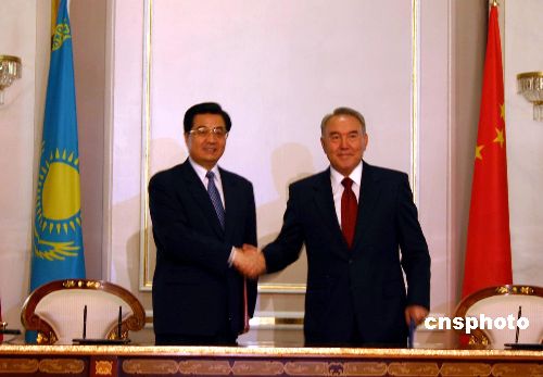 中新社阿斯塔納七月四日電(記者齊彬)中國國家主席胡錦濤和哈薩克斯坦總統(tǒng)納扎爾巴耶夫今天在此間宣布,兩國將建立戰(zhàn)略伙伴關(guān)系。