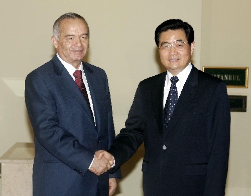 兩國元首還就中亞地區(qū)形勢交換了看法。胡錦濤強(qiáng)調(diào)指出,中國一貫尊重并支持烏茲別克斯坦等中亞各國自主選擇的發(fā)展道路,支持他們?yōu)榫S護(hù)國家安全、地區(qū)和平穩(wěn)定所做的努力?ɡ锬蚋叨仍u價(jià)中國對中亞地區(qū)的政策,表示愿同中方加強(qiáng)在雙邊和上海合作組織等多邊框架內(nèi)的合作,維護(hù)地區(qū)穩(wěn)定、促進(jìn)共同發(fā)展。