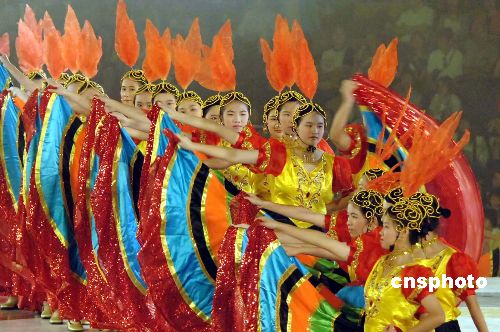 演員們載歌載舞歡慶體育館落成