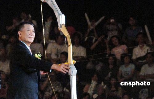 開幕式上澳門特首何厚鏵扳弓射箭點燃圣火