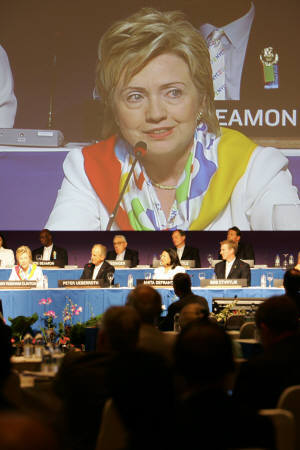 7月6日,美國參議員、前第一夫人希拉里·克林頓進行申奧陳述,支持紐約成為2012年奧運會的主辦城市。圖:路透社