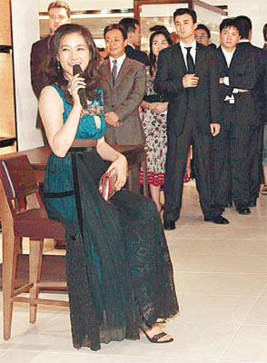 韓國(guó)首爾的LV專門店昨日正式舉行開幕,大會(huì)特別邀得“LV之友”兼近期港人風(fēng)頭強(qiáng)勁的李英愛(ài)出席,吸引了過(guò)百傳媒前來(lái)采訪。穿上墨綠色及黑色連身長(zhǎng)裙的愛(ài)姐,在十名保安護(hù)航下出場(chǎng),更親切地與在場(chǎng)人士微笑揮手,并與品牌亞太區(qū)總裁Francois Delage及韓國(guó)行政總裁Hyun Ouk Cho合照留念。