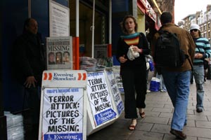 倫敦遭受襲擊成了報(bào)販們的巨幅廣告