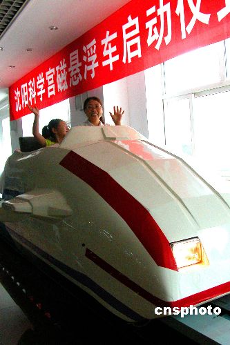 7月9日,一位女士帶著孩子在沈陽(yáng)科學(xué)宮乘坐磁懸浮車。該磁懸浮車軌道60米,是全國(guó)室內(nèi)最長(zhǎng)的軌道,往返1分60秒。自6月24日運(yùn)行以來,每天接待100多名顧客。作者:劉寶成