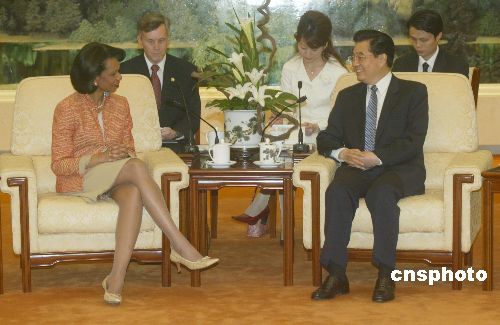 中新社北京七月十日電(記者李靜)中國國家主席胡錦濤十日會見美國國務(wù)卿賴斯時表示,相信賴斯此次訪華將有助于雙方加強溝通,增進理解,促進合作,有助于促進中美關(guān)系健康穩(wěn)定地向前發(fā)展。