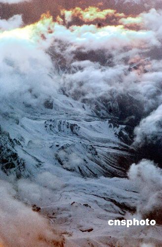 據(jù)中國(guó)科學(xué)院天山冰川觀測(cè)試驗(yàn)站介紹,根據(jù)長(zhǎng)期科學(xué)觀測(cè)顯示,受氣候變化與地球持續(xù)升溫影響,新疆天山一號(hào)冰川消融加快,有觀測(cè)記錄的45年間冰川厚度減薄11米之多,損失總量約為1838萬(wàn)立方米。圖為空中俯瞰新疆天山山脈。作者:韓藝冰