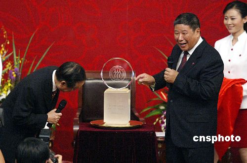 這三件禮物包括:一、水晶制作的中國人民大學(xué)標(biāo)識。標(biāo)識牌以水晶為主要材質(zhì),內(nèi)以激光雕刻人大標(biāo)識,底座正面上部雕刻“人民、人本、人文”,下部雕刻:“新黨主席郁慕明先生中國人民大學(xué)演講紀(jì)念二00五年七月十二日”。