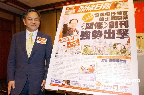 香港星島新聞集團(tuán)12日推出發(fā)行量40萬份最大的免費(fèi)報(bào)紙--《頭條日報(bào)》。為配合上班族的生活節(jié)奏,《頭條日報(bào)》篩選每日爆炸性的信息精華作明快報(bào)道,令讀者在上班前即能夠掌握當(dāng)天的時(shí)事脈搏。作者:洪少葵