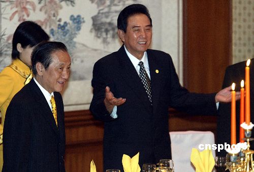 七月十二日晚,中共中央臺(tái)灣事務(wù)辦公室主任陳云林在北京宴請(qǐng)新黨主席郁慕明率領(lǐng)的新黨“民族之旅”訪問(wèn)團(tuán)。作者:廖文靜