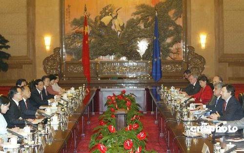 圖:溫家寶與歐盟委員會主席巴羅佐舉行會談