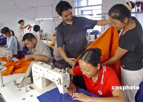 | 7月14日,湖北宜都市某制衣有限公司負(fù)責(zé)人在生產(chǎn)車(chē)間檢查產(chǎn)品質(zhì)量。今年美國(guó)和歐盟針對(duì)中國(guó)的紡織品設(shè)限和特保措施后,使這家有50多人的小企業(yè)停產(chǎn)達(dá)兩個(gè)多月,損失嚴(yán)重。6月11日,中國(guó)和歐盟達(dá)成紡織品貿(mào)易協(xié)議,也使這家小企業(yè)絕處逢生。目前,該企業(yè)又接到一批來(lái)自歐盟國(guó)家的工裝加工訂單,正組織工人夜以繼日地勞作著。作者:曹禮達(dá)