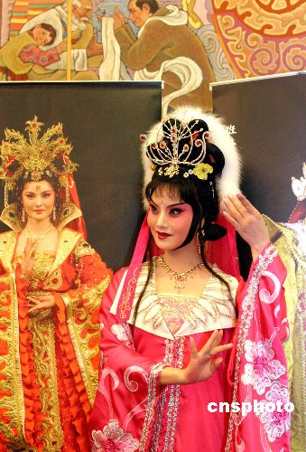 | 中國京劇院與西藏自治區(qū)藏劇團聯(lián)合創(chuàng)辦演出的京劇、藏戲《文成公主》,擬于八月二十八日在拉薩舉行的西藏自治區(qū)成立四十周年慶典活動中首演。藏戲《文成公主》作為八大經(jīng)典藏劇之一,早已享譽劇壇。此次藏漢聯(lián)手創(chuàng)排《文成公主》,將在注重京劇、藏戲美學特征的基礎上,強調(diào)兩種戲曲藝術的兼顧與融合,并賦予作品新的時代精神。圖為七月十八日在人民大會堂舉辦的京劇、藏戲《文成公主》新聞發(fā)布會上文成公主的扮演者鄧敏正在表演該劇的精彩片段。作者:張勤