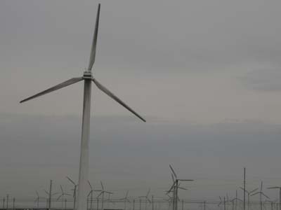 在從烏魯木齊去吐魯番的路上,一大片風(fēng)力發(fā)電機(jī)挑起了不少游人的興趣。