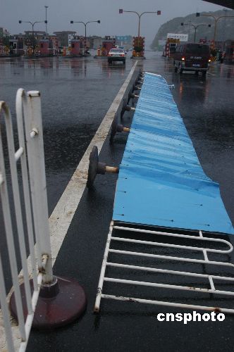 7月18日17時(shí)30分左右,“海棠”風(fēng)暴將福州至泉州高速公路入口處的隔欄掀翻在地。作者:鄭祚聲