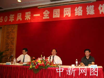 七月十九日,“五十年風(fēng)采—全國網(wǎng)絡(luò)媒體新疆行”媒體見面會在烏魯木齊舉行,新疆維吾爾自治區(qū)主席司馬義·鐵力瓦爾地接受了記者們的聯(lián)合采訪。