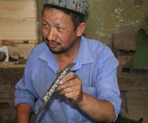 英吉沙小刀久負(fù)盛名,小刀廠的工匠會(huì)在制作的小刀上刻上自己的名字。