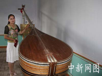 新疆喀什疏附縣吾庫薩克鄉(xiāng)中國新疆民族樂器村,鎮(zhèn)村之寶全長3.39米的熱瓦甫、4.7米的都塔爾、4.95米的沙塔爾三件巨型樂器,已經(jīng)申報(bào)吉尼斯紀(jì)錄.