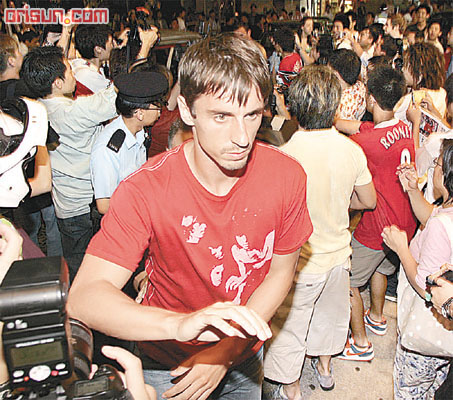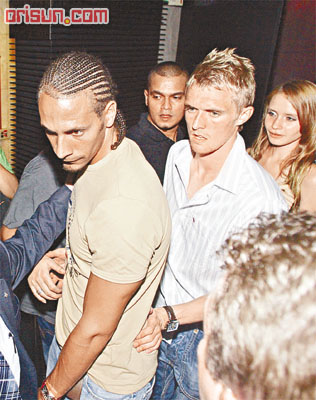 前晚十一時(shí)半,球星開始出動夜店,各球星包括里奧·費(fèi)迪南德,弗萊徹,魯尼,范尼斯特魯伊,西爾維斯特,阿蘭·史密斯,羅西,薩哈等在保安陪同下,浩浩蕩蕩抵達(dá)中環(huán)Kee Club,現(xiàn)場早有近百名球迷守候,加里·內(nèi)維爾還貪玩搞記者鏡頭,致一名記者跌倒,令隨后的斯科爾斯幾乎踩到記者身上,因場面混亂,要出動十多名警員到場維持秩序。
