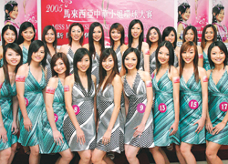 中新網(wǎng)7月25日電 20名來(lái)自馬來(lái)西亞各地的佳麗,將于8月6日在角逐“2005年大馬中華小姐大賽”的美后冠軍寶座,以取得前往香港參加“2005年鳳凰衛(wèi)視中華小姐環(huán)球大賽”的決賽資格。
