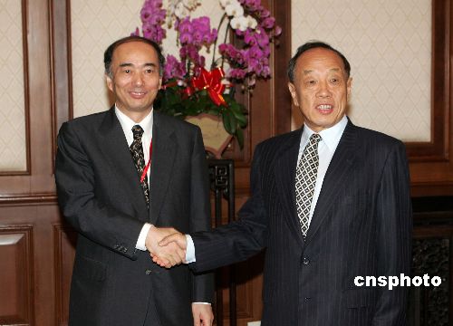 中國(guó)外交部長(zhǎng)李肇星七月二十五日在北京釣魚(yú)臺(tái)國(guó)賓館會(huì)見(jiàn)并宴請(qǐng)前來(lái)出席朝核問(wèn)題六方會(huì)談的日本外務(wù)省亞大局長(zhǎng)佐佐江賢一郎。作者:毛建軍